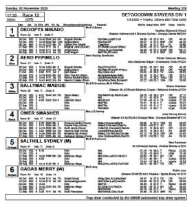 | 3 | Ballymac Madgie | 11 | 35 | 31% | £5,372 | -£0.52 | 6 | 13 | 46% | -£0.89 | 4 | 6 | 67% | 15.02 | 39.27 | 39.12 | 4 | 117 | |