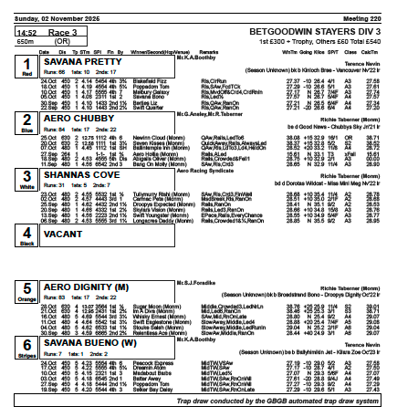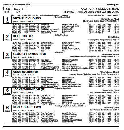 | 2 | Savana Ohmy Jo | 8 | 19 | 42% | £1,485 | £3.90 | 4 | 6 | 67% | £2.52 | 4 | 8 | 50% | 15.22 | 15.12 | 2 | 42 | ||