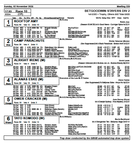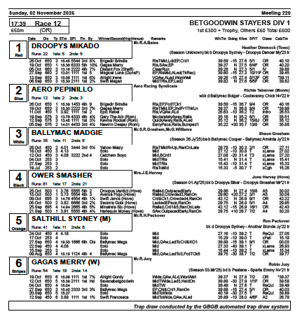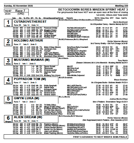 | 3 | Westway Dancer | 4 | 6 | 67% | £620 | £6.08 | 2 | 2 | 100% | £2.58 | 0 | 0 | 0.00 | 0.00 | 6 | 6 | |||