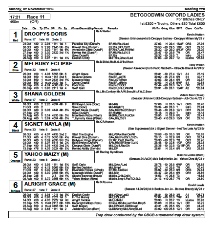 All the form and stats ahead of Oxford’s Sunday card including the KAB Puppy Collar Final.