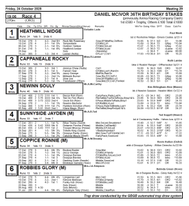 | 6 | Hows That | 0 | 3 | 0% | £195 | -£3.00 | 0 | 3 | 0% | -£3.00 | 3.06 | 28.75 | 28.75 | 0 | 3 | 0% | 20 | 0 |