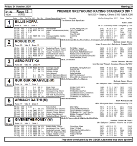The full form and stats ahead of Dunstall Park’s Friday card which includes the Premier Greyhound Racing Oaks and Arena Racing Company Scurry finals