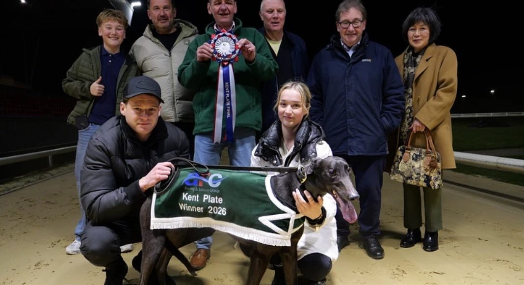 Scooby the Lady became just the fourth winner of the event when leading home hot favourite and defending champion Proper Heiress in the final of the Arena Racing Company Kent Plate at Central Park on Saturday – setting a new track record for the 491m trip there in the process.